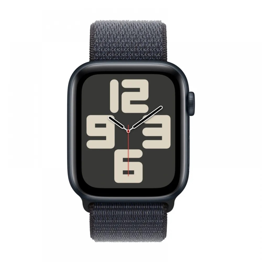 Часы Apple Watch SE 2024, 44 мм, корпус из алюминия цвета «Полуночный черный», нейлоновый браслет черного цвета