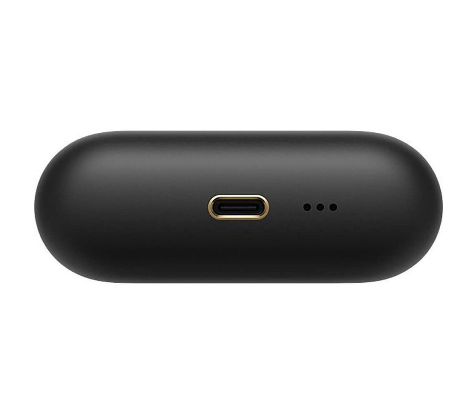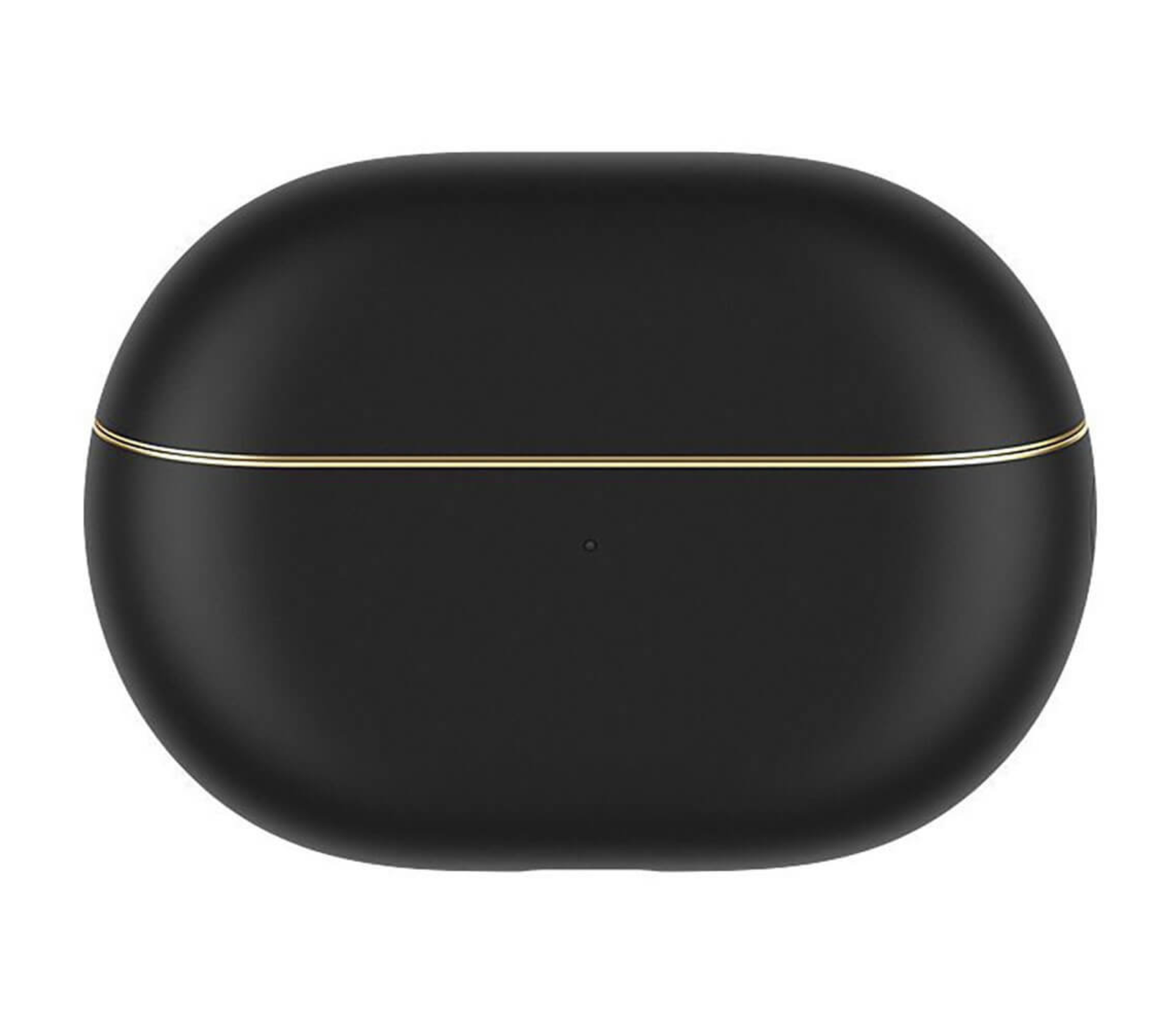 Кейс повторяет цвета и формы упаковки, но имеет гораздо больше тонких деталей. Он выполнен из матового пластика, а грань между крышкой и остальной частью корпуса выделена золотой линией. На этом фоне глянцем выделен прямоугольник возле механизма складывания. Он изготовлен из керамики, а логотип бренда нанесён на него с помощью гравировки ультрафиолетовым лазером, токонепроводящей вакуумной металлизации и вакуумного напыления. В нижней части кейса находится разъём Type-C для зарядки и три отверстия встроенного динамика для звуковых оповещений.