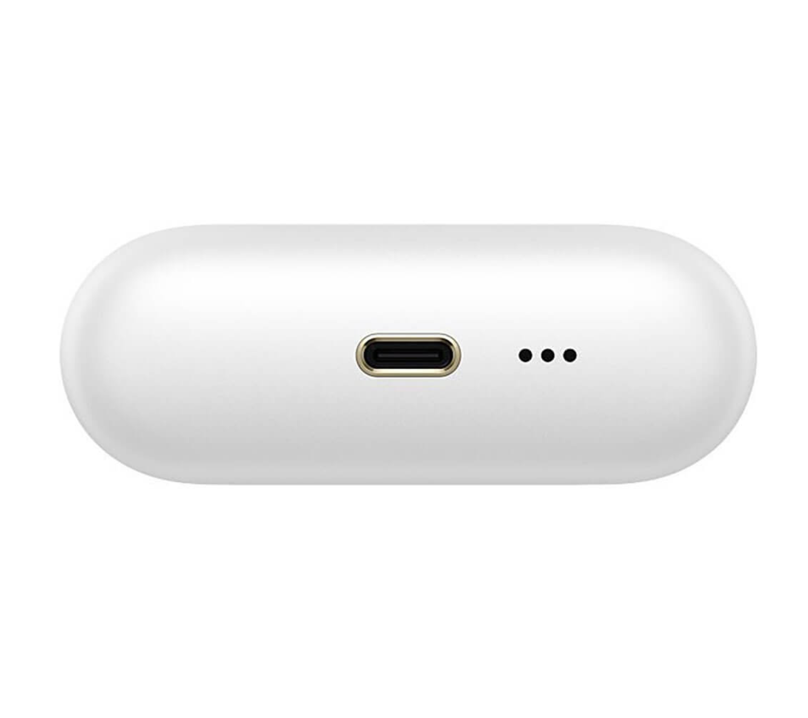 Кейс повторяет цвета и формы упаковки, но имеет гораздо больше тонких деталей. Он выполнен из матового пластика, а грань между крышкой и остальной частью корпуса выделена золотой линией. На этом фоне глянцем выделен прямоугольник возле механизма складывания. Он изготовлен из керамики, а логотип бренда нанесён на него с помощью гравировки ультрафиолетовым лазером, токонепроводящей вакуумной металлизации и вакуумного напыления. В нижней части кейса находится разъём Type-C для зарядки и три отверстия встроенного динамика для звуковых оповещений.