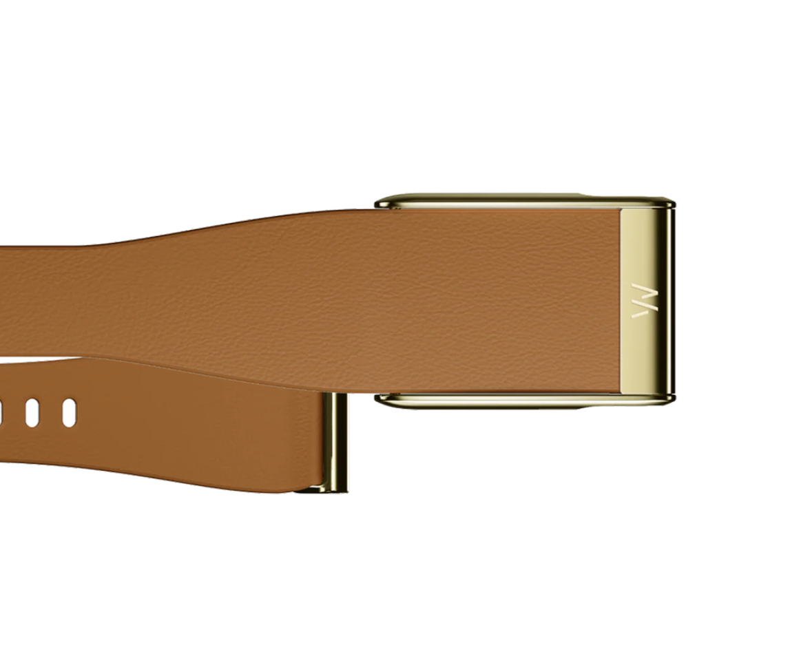 Кожаный люксовый ремешок для Whoop 5.0 LeatherLuxe Tapered Band (Camel with Gold) — элегантный кожаный аксессуар в оттенке карамели с изысканными золотыми элементами. Утончённый силуэт, мягкая натуральная кожа и премиальные материалы делают его отличным выбором для тех, кто ценит стиль и комфорт.